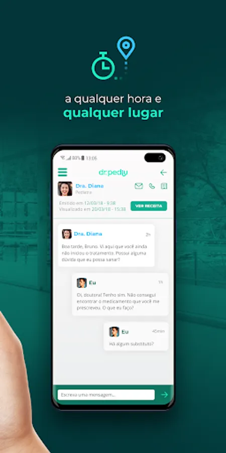 Get your prescriptions on mobile and save time, shop with technology, quickly and without paper! Security, enjoy internal chat in case of direct questions with the prescriber, legal, readable and your data protected by law. Compare prices, reminders to take the medicine, places of disposal. Have all prescriptions stored and organized anytime and anywhere.
