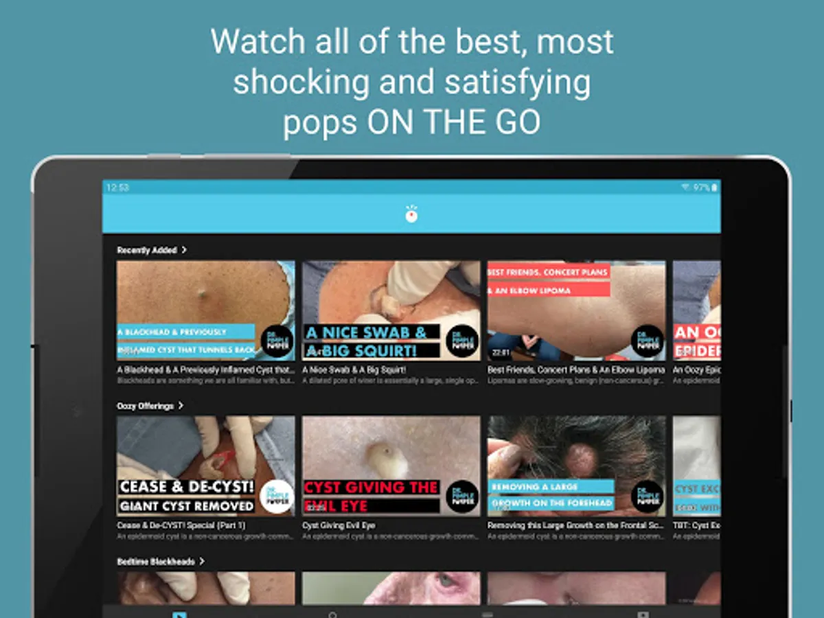 The satisfaction of pimple popping… whenever, wherever. Watch all of the best, most shocking and satisfying pops ON THE GO and without any ads. The Dr. Pimple Popper app brings Dr. Sandra Lee’s best videos -- all the cysts and blackheads you can imagine -- in one place! For those ultimate #popaholics, unlock exclusive access to new content and behind-the-scenes footage. All of this and MORE is waiting on the other side when you subscribe.