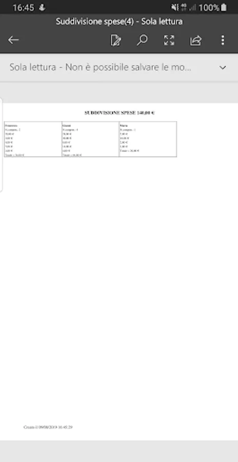 It is possible to generate a pdf file containing the account processing, so as to be able to share the report via email, or other apps suitable for sharing.