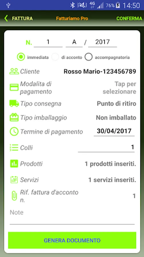 * This is the trial version that allows you to generate a limited number of documents for the purpose of the app We invoice Pro rating instead has unlimited functions.