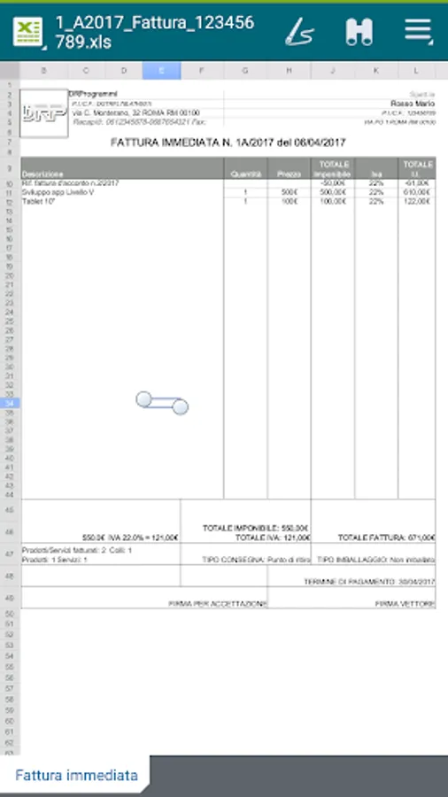 Whether you are an entrepreneur, a craftsman, a merchant, a professional, thanks to this app in trial *, you will always have the accounts with you, in your trusty smartphone / tablet. You will generate in a few steps in xls format (Excel): estimates, invoices and receipts, which you can choose to send your e-mail clients or share in real-time using other apps on your device (whatsapp, telegram, printer, etc).