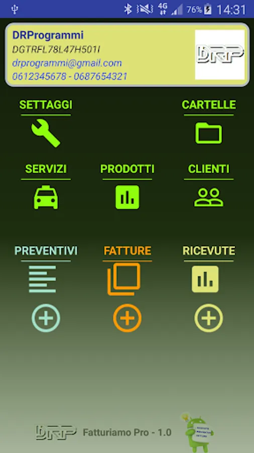 Whether you are an entrepreneur, a craftsman, a merchant, a professional, thanks to this app in the unlimited version, you'll always have the accounts with you, in your trusty smartphone / tablet. You will generate in a few steps in xls format (Excel): estimates, invoices and receipts, which you can choose to send your e-mail clients or share in real-time using other apps on your device (whatsapp, telegram, printer, etc).
