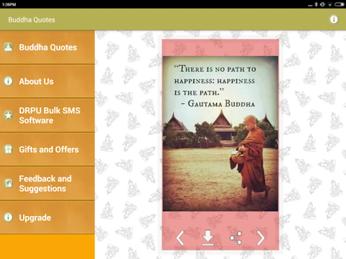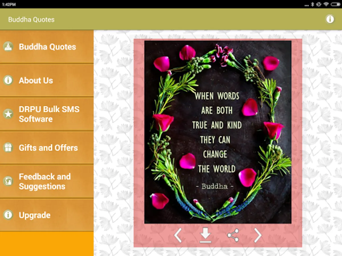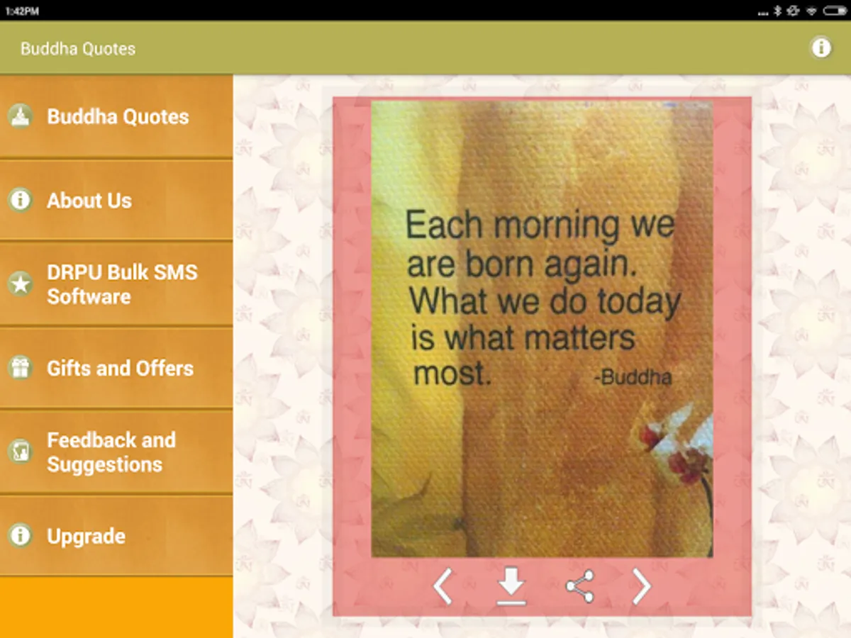 This is a Free app of Collection of Gautam Buddha Image Quotes and thoughts with beautiful Pictures. You can download these picture quotes to mobile device or share them on any type of social media website such as facebook Twitter tumblr and instagram etc.
