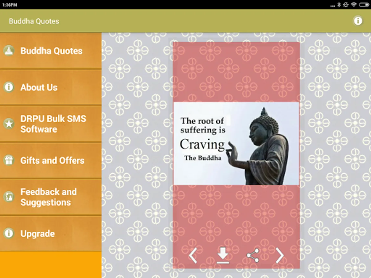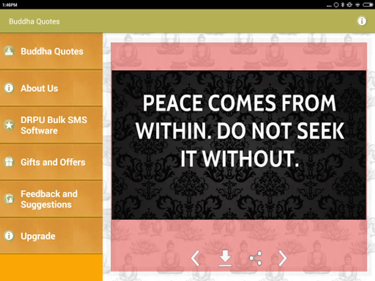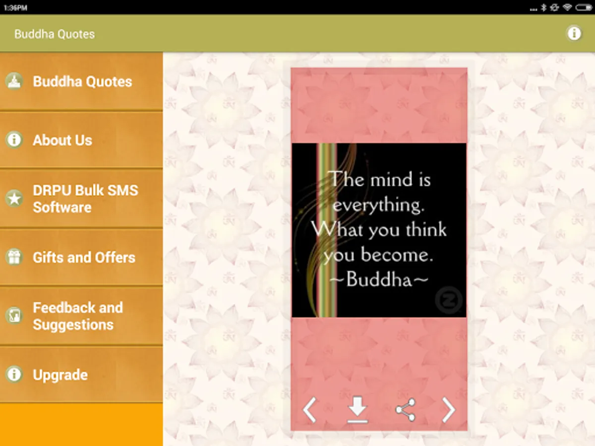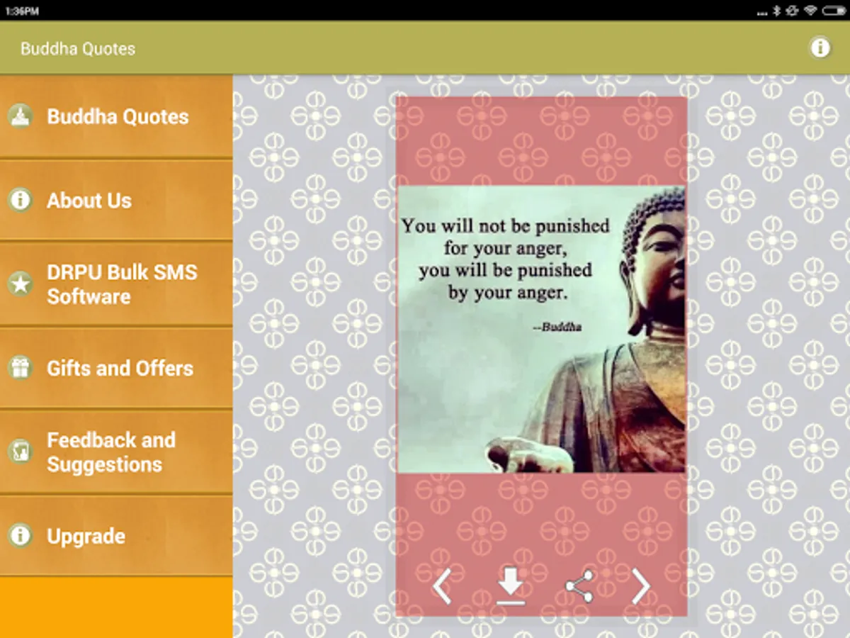 This is a Free app of Collection of Gautam Buddha Image Quotes and thoughts with beautiful Pictures. You can download these picture quotes to mobile device or share them on any type of social media website such as facebook Twitter tumblr and instagram etc.