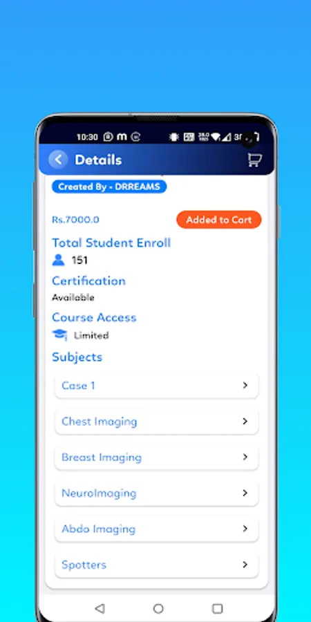 This app is meant for Radiology Residents. The courses in the app covers all systems required for Radiology residents with a focus on conventional imaging. It also has detailed Sessions on Radiological Anatomy, Basic Imaging Protocols, Important Topics, OSCEs, Spotters