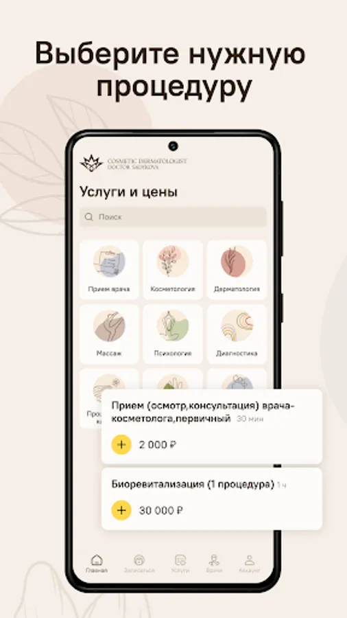2. Услуги: Dr.Sadykova предоставляет полный список услуг в области красоты и здоровья. Вы можете ознакомиться с описанием услуг, их стоимостью и доступностью, а также просмотреть отзывы других пользователей.