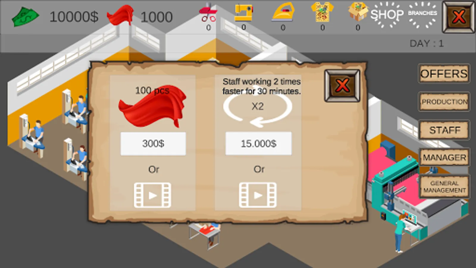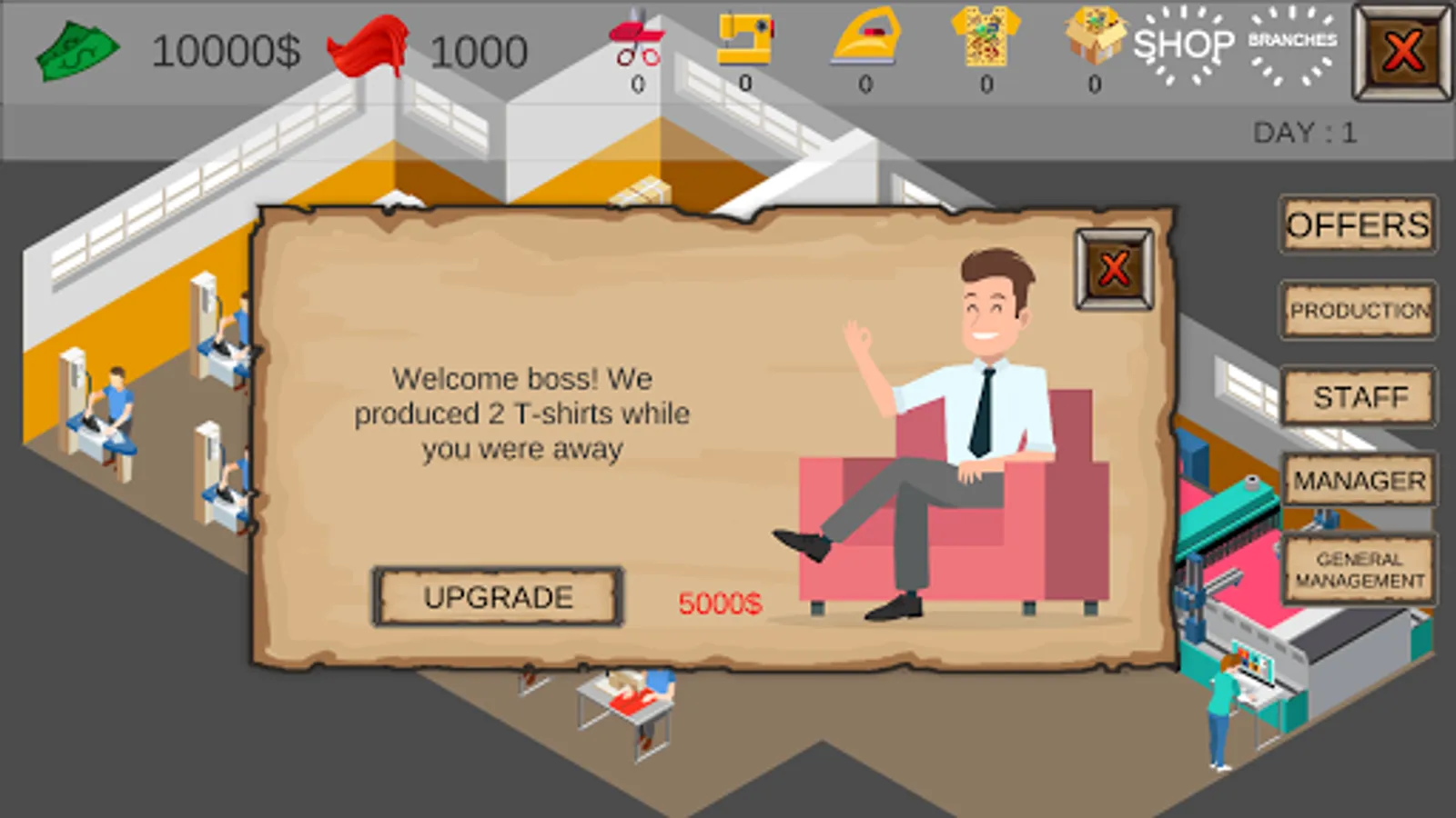 If you want to produce t-shirts, work for other companies, open your own branches and rise in business life. T-Shirt Inc.