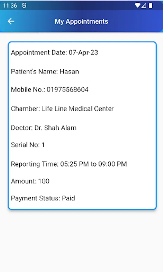 # Doctor's Appointment buy Mobile App.