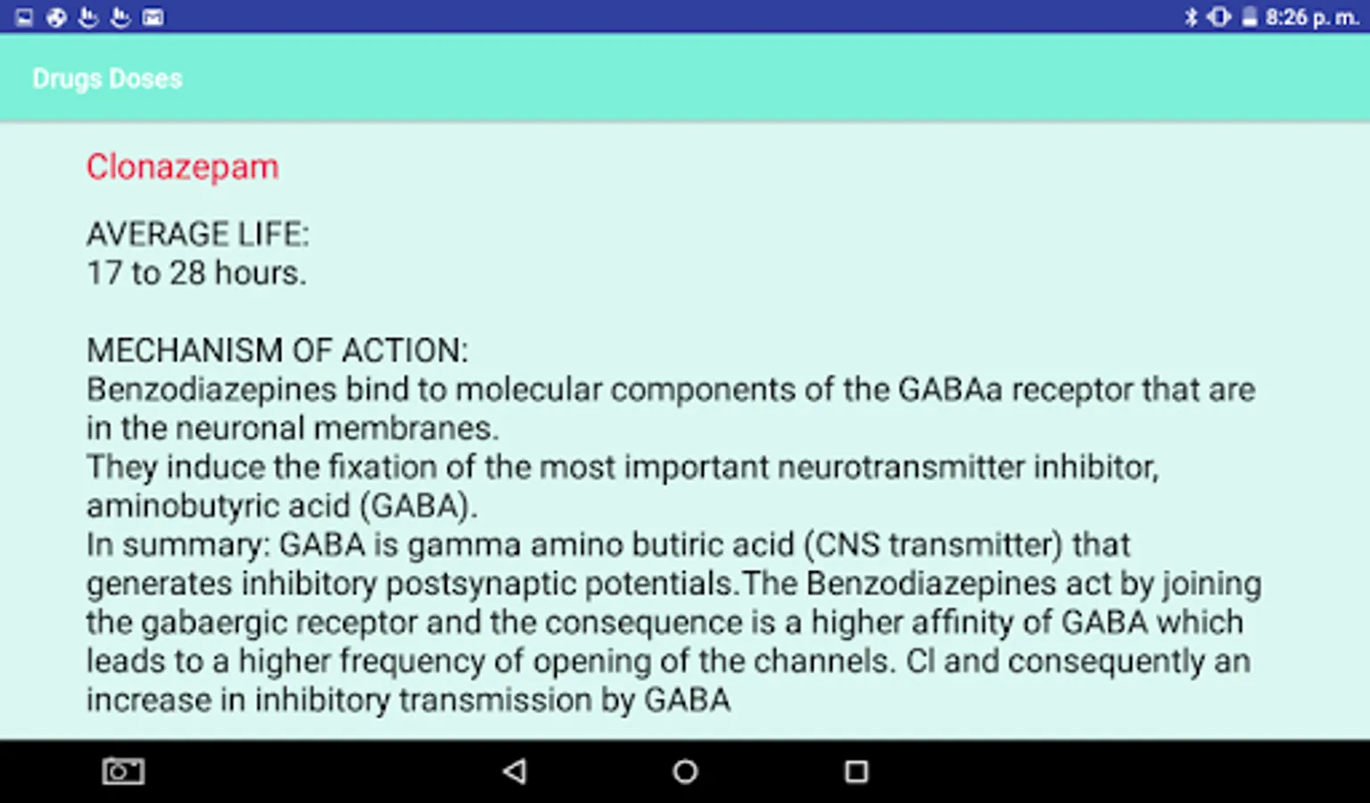 This application is to make LIFE MORE EASY to health professionals, it is the equivalent of having a library of pharmacology books in their mobile device.