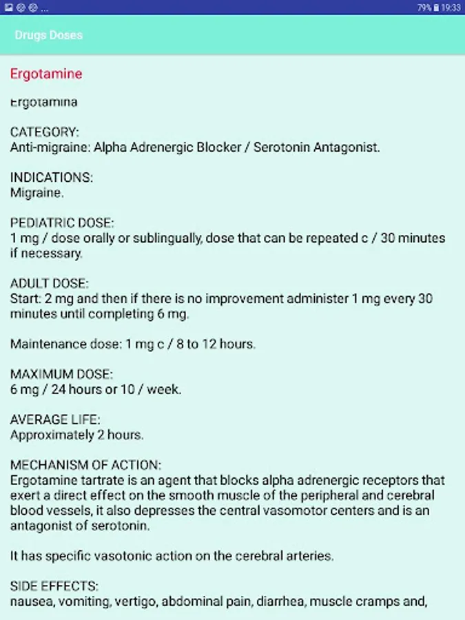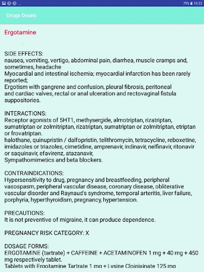 Most of the medications in this application include the mechanism of action, contraindications and risk category of use in pregnancy.