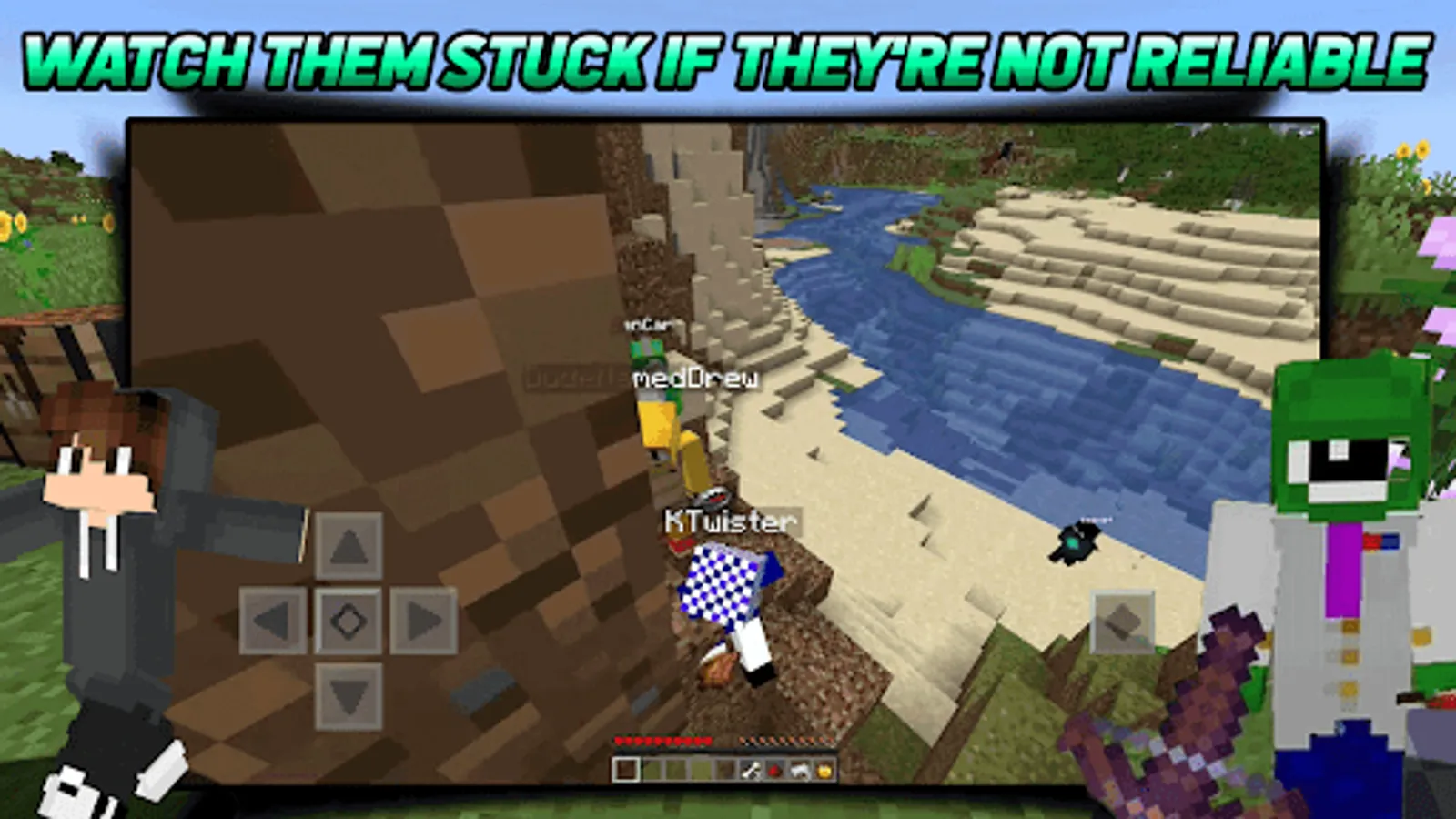 This is an unofficial application for Minecraft Pocket Edition. This application is not affiliated in any way with Mojang AB. The Minecraft Name, the Minecraft Brand and the Minecraft Assets are all property of Mojang AB or their respectful owner. All rights reserved. In accordance with http://account.mojang.com/documents/brand_guidelines.
