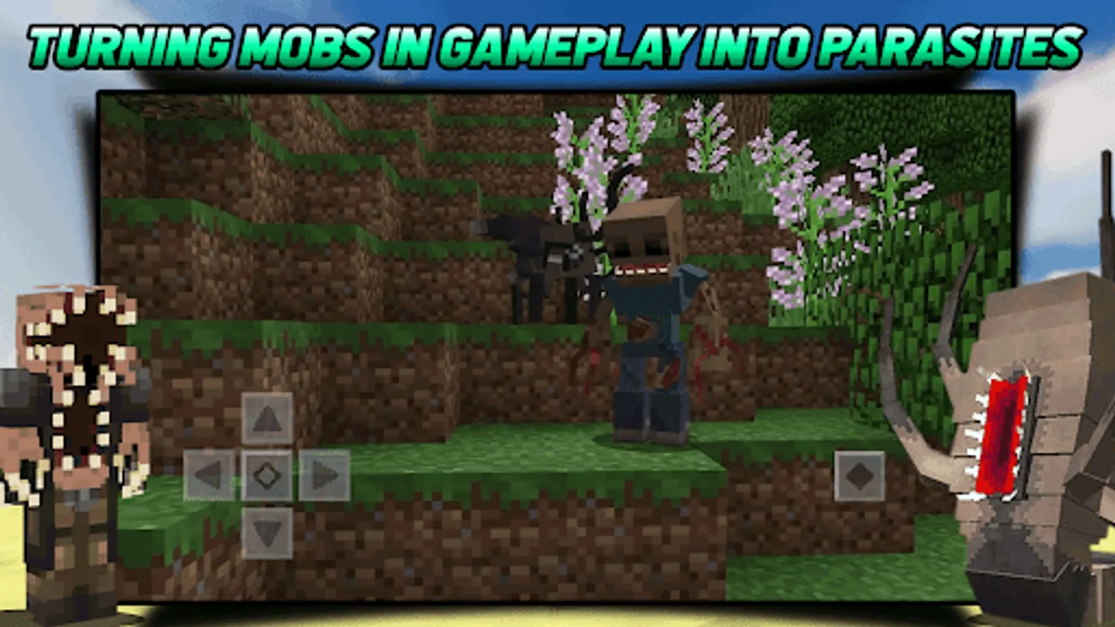 Some mobs that you encounter in mcpe you can activate parasitic creatures mod mcpe to see how if some villagers, enderman, even zombies and other 500 mobs for minecraft turn into something terrible with this parasite mod for mcpe. If you activate parasite epidemic mod you can keep your distance from some parasite creatures mod mcpe because if you are hit by their attacks you will get terrible damage. This parasite addon for mcpe if you activate in survival mode will add to your challenge during mcpe gameplay, you will be tested in parasite mod for minecraft survival to survive with various terror or attacks from parasite minecraft.