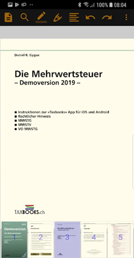 With the Taxbook's free app, you can load and work with selected Swiss tax publications as a supplement to the book on one of your mobile devices. With its interactive content and index and numerous linked links, users can navigate the books quickly and safely. The eBooks are based on PDF files that are best viewed on a tablet device; The app also runs on mobile devices with smaller displays (for example Android phones). At present, the current versions of the following publications are available for download from the catalog of the publishing house Taxes and Law: