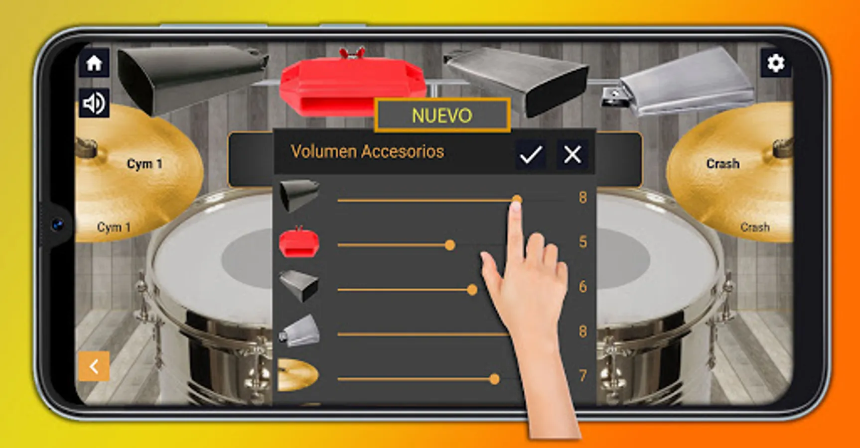 It has pads with timbale sounds and also a virtual timbale instrument with sequence to improvise rhythms play with your fingers touching the screen and at the same time and have fun.