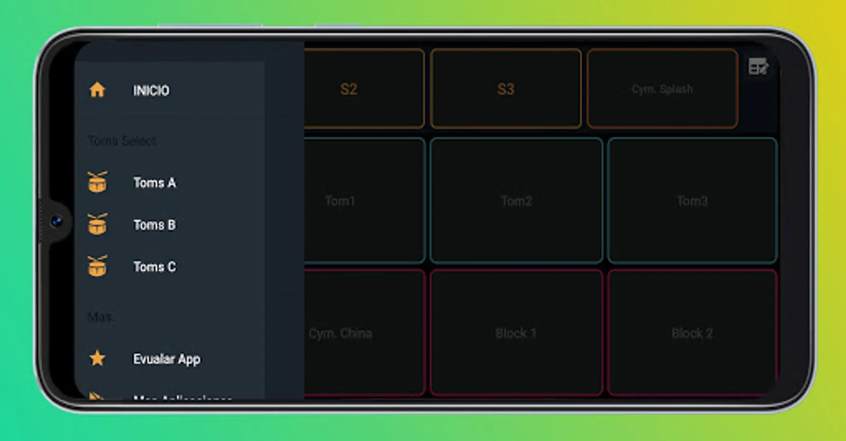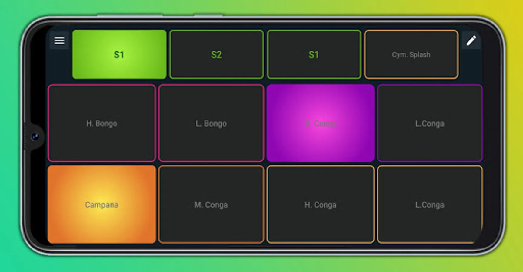 It has pads with percussion sounds for southern cumbia with sequences to improvise southern rhythms. Play with your fingers touching the screen at the same time and have fun.