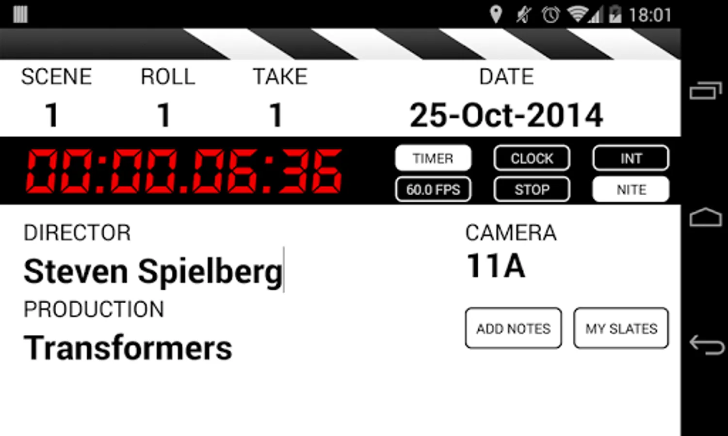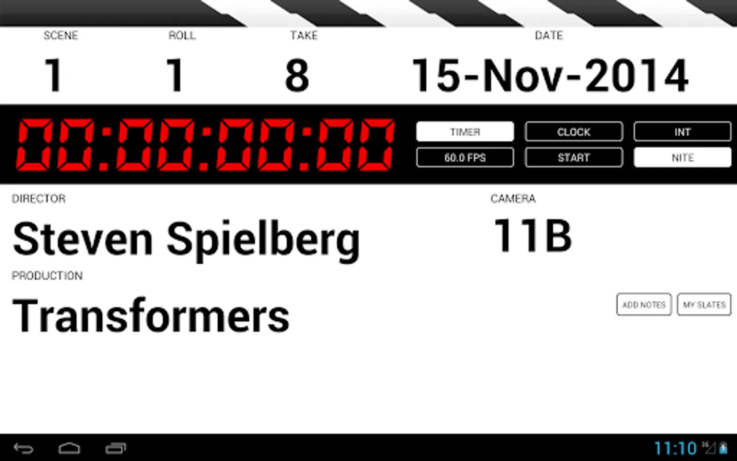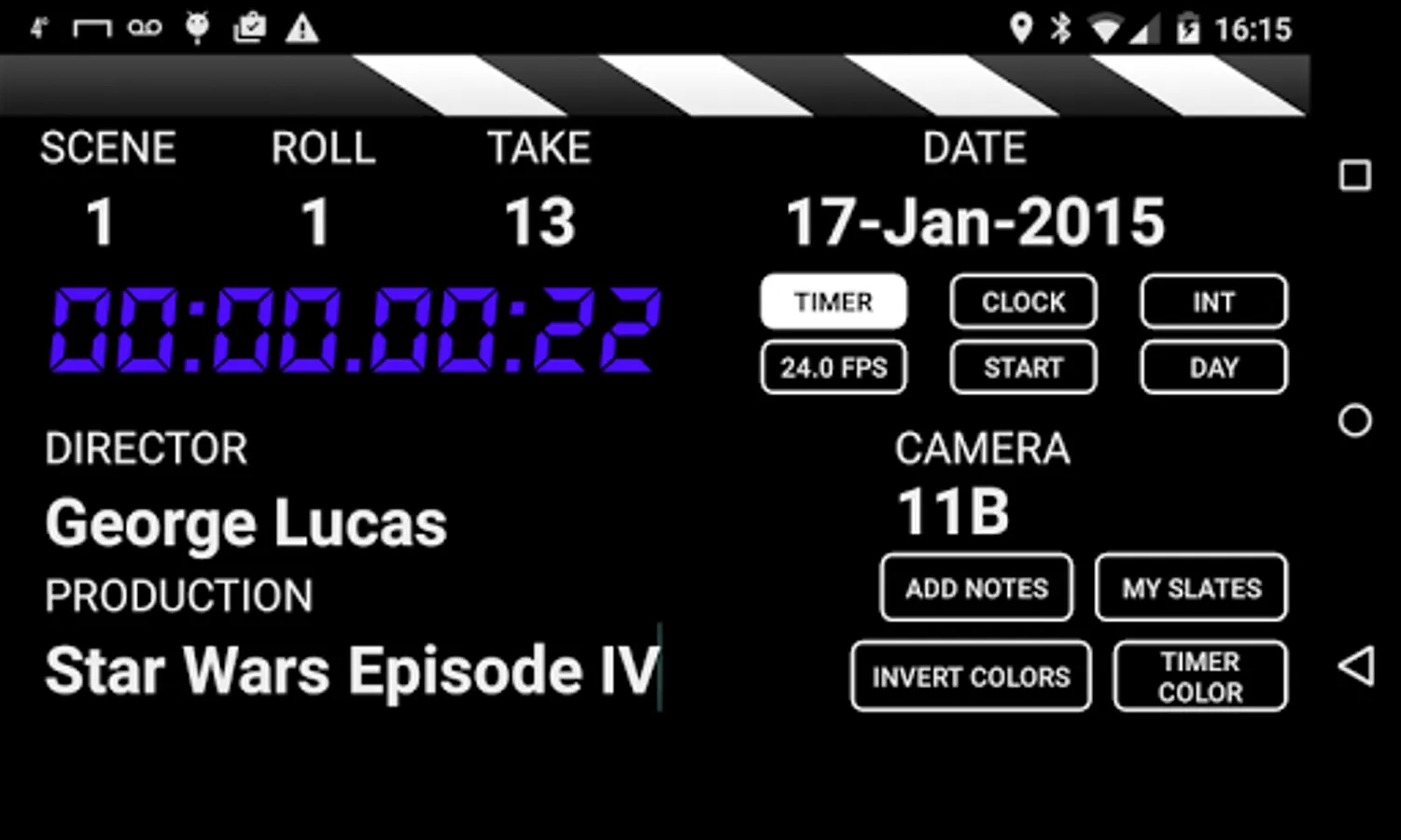 A professional-grade advanced clapperboard app with clear audio and visual sync marks with variable FPS timecode and clock.