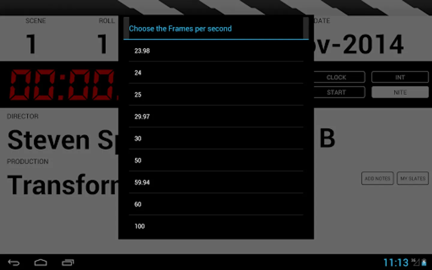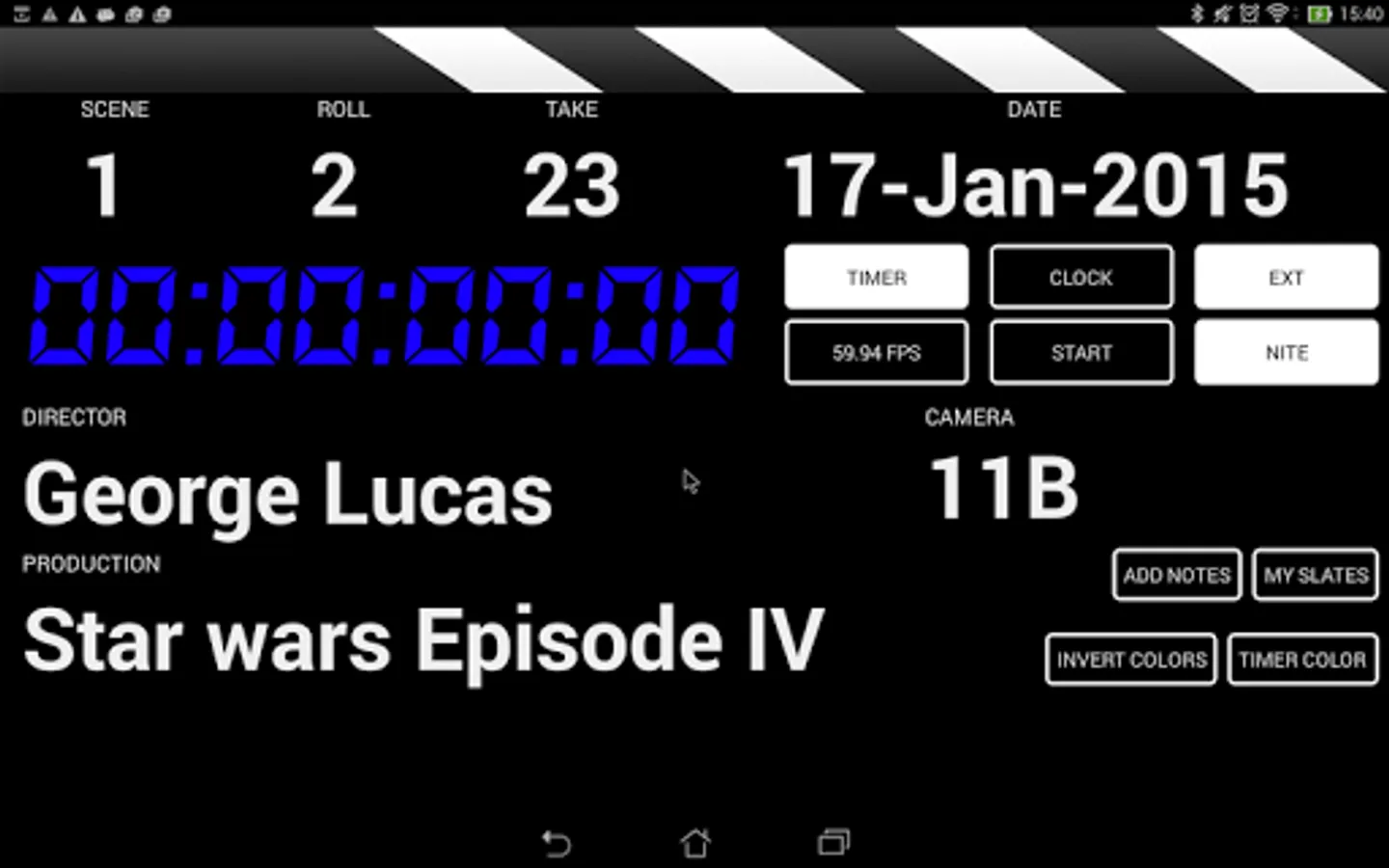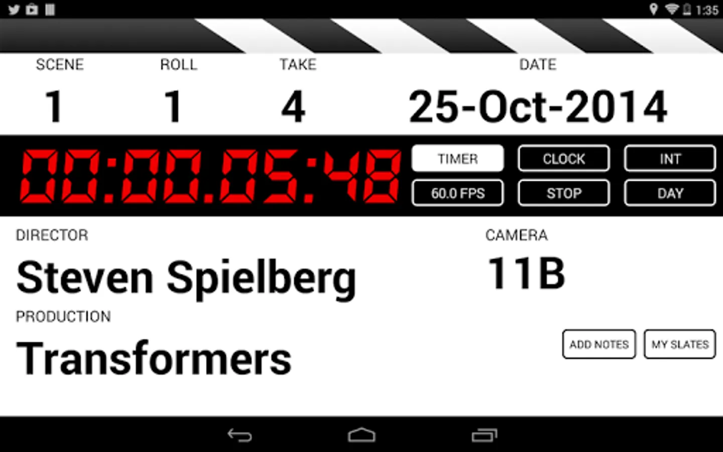 A professional-grade advanced clapperboard app with clear audio and visual sync marks with variable FPS timecode and clock.