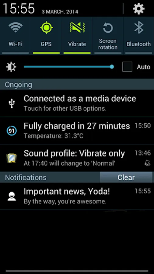 You can now also pass on feelings of awesomeness through the expanded notification (Jelly Bean+).