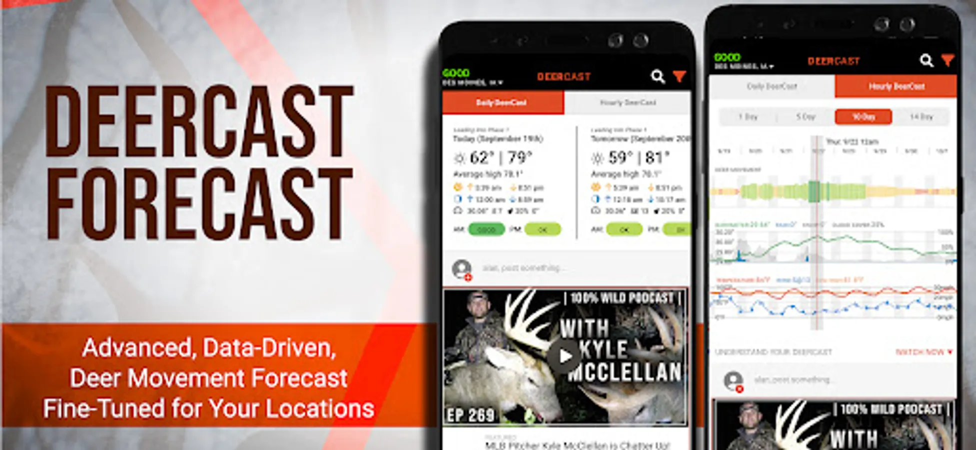 Whitetail deer behavior is driven by their environment. Become a better whitetail hunter with the DeerCast hunting app! Get data-driven deer movement predictions, advanced weather forecasts, and mapping features all specifically formulated with the whitetail deer hunter in mind. DeerCast delivers all the information you need to get your buck!