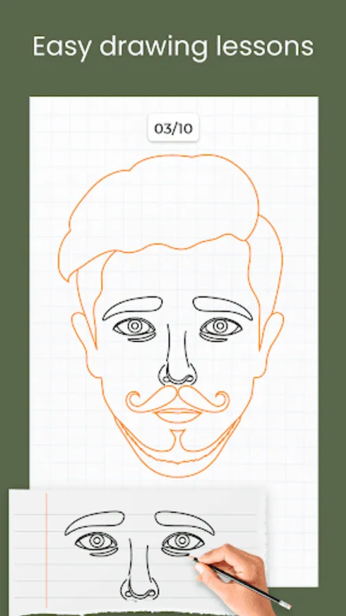 In this app, there are step by step tutorials that teach you how to draw human faces.