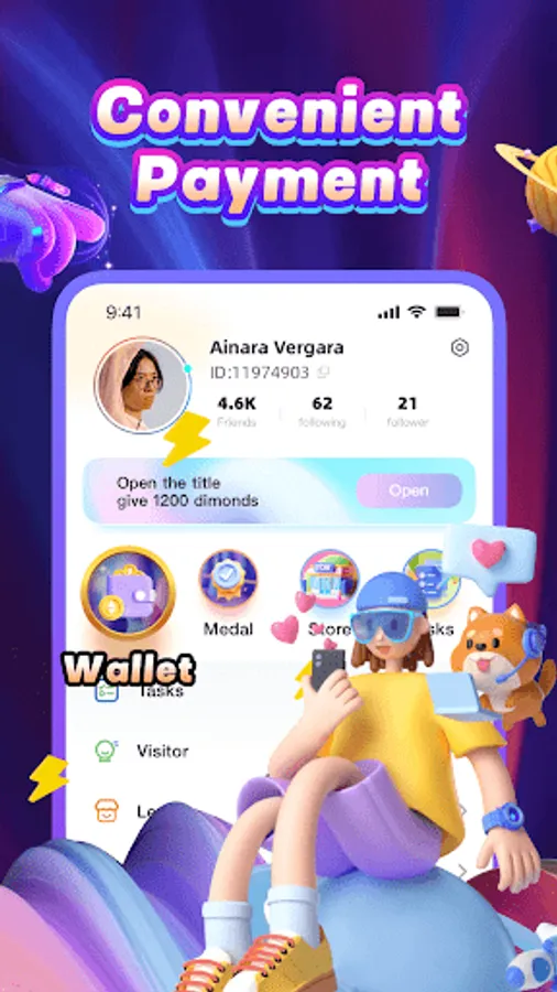 You can send awesome virtual gifts to those who you like to show your support, as well as a variety of interesting tricky special effects, sports car and yacht decorations and noble avatar frames for you to choose to show your noble status.