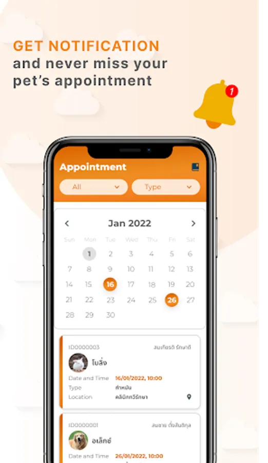 Users can use this app to see when they can make an appointment with the pet clinic. and book an appointment that is convenient for you You can also track the status of the appointments booked. Including receiving notifications when reaching an appointment time.