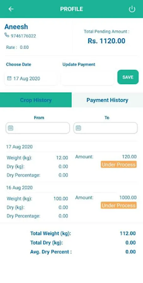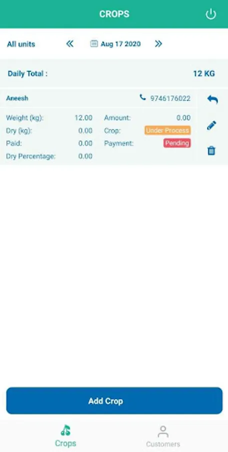 Dryer ERP is an app used to manage the agricultural products processing units/stores, like cardamom processing units. This app helps farmers or unit owners to keep track of their crops being dried/processed, keep accounts, manage customer data, calculate pending payments, add payments anywhere without forgetting, get average dry percent so measure the water content with each crop and much more.