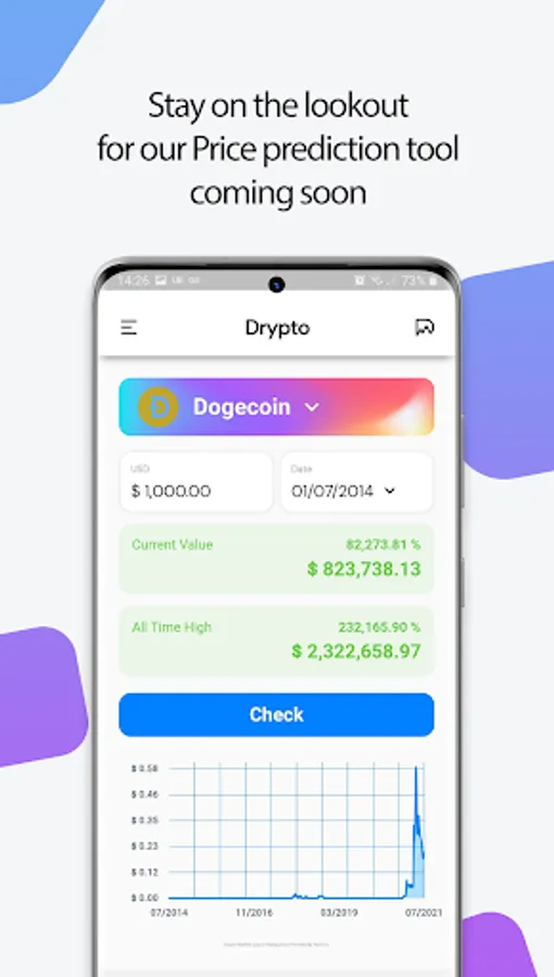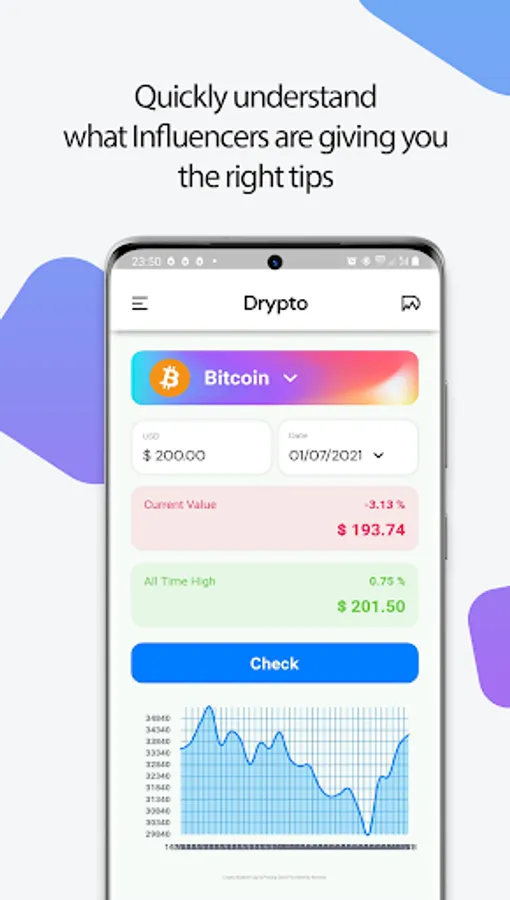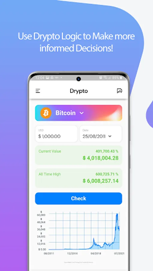 Instantly calculate Bitcoin and Altcoins’ performance by contrasting it to actual money!