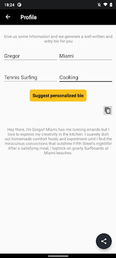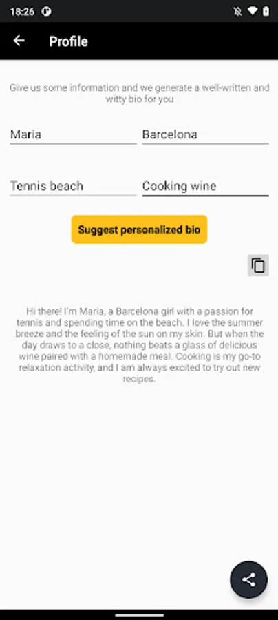 We also support you in creating a profile bio text based on your interests, city or hobbies.