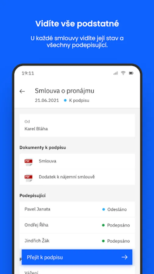 Whether you are a salesman traveling for clients or signing documents in your office, the mobile application on your tablet will help you.