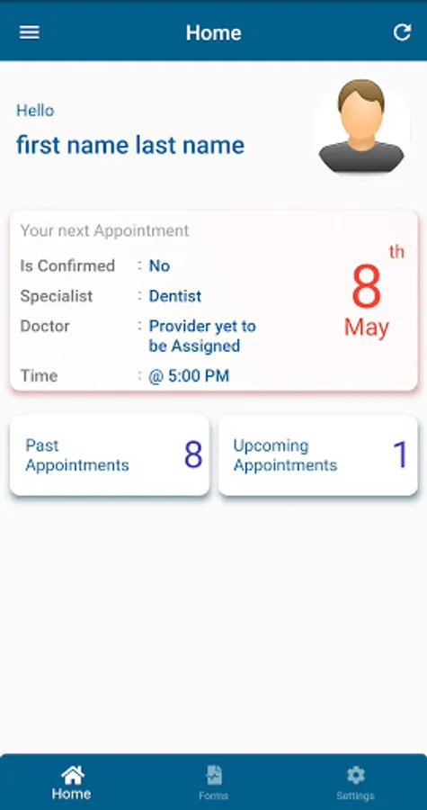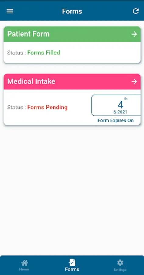 Users can have forms in the app which needs to be filled sent by the provider.