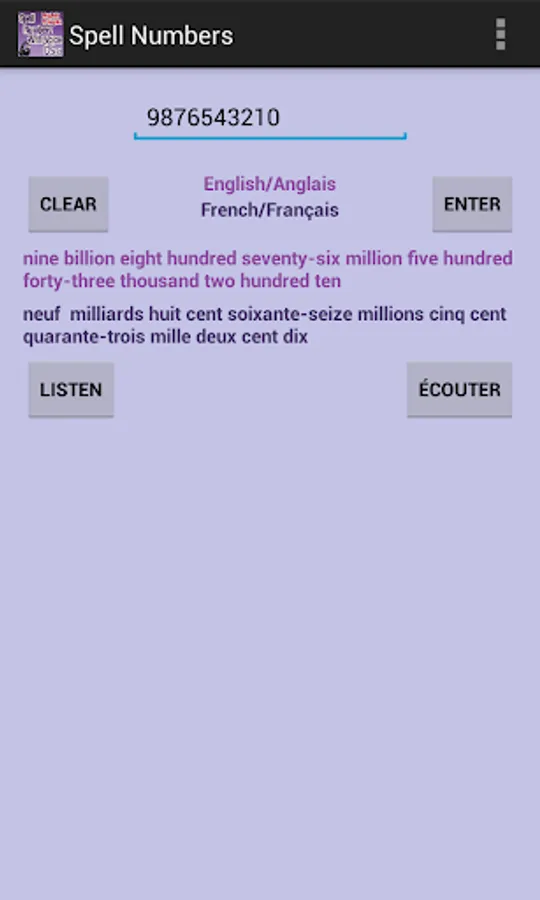 This app spells numbers in English and French and helps you to spell them correctly at school and work.