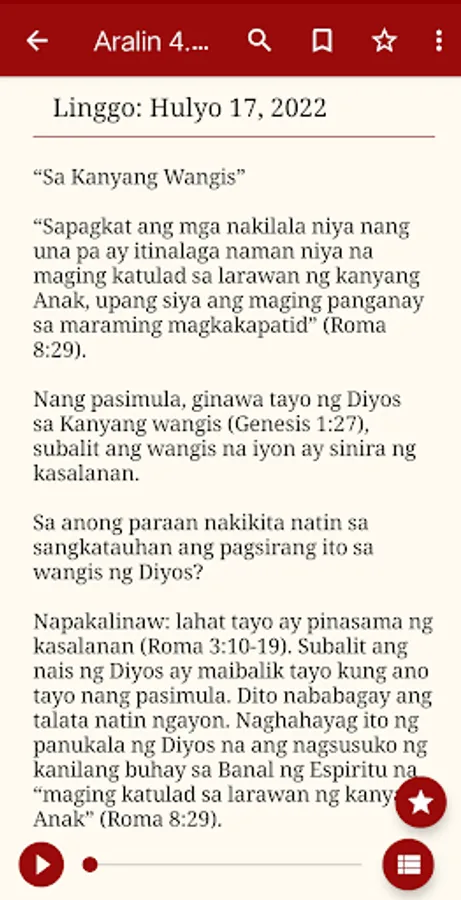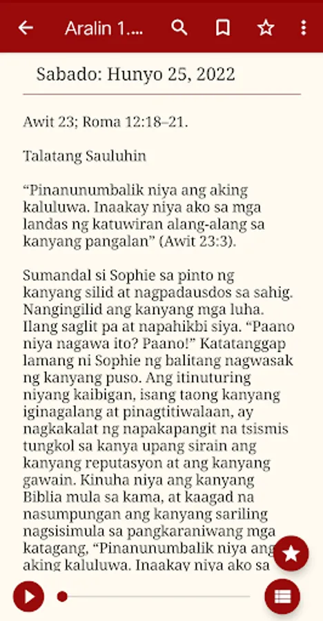 This app provides quarterly Sabbath School lessons in a Tagalog language and absolutely free. This is intended to bring your Sabbath School closer to you. You are encouraged to update the app every quarter. All content is produced by the Seventh-day Adventist church.