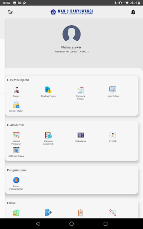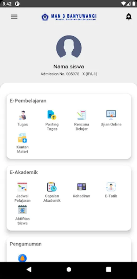 The MAN 3 BANYUWANGI school digital application includes various features such as announcements, lesson scheduling, sending assignments, communication between teachers, students, and parents, as well as accessing learning materials online