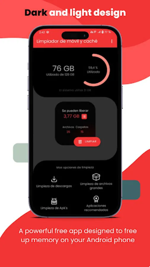 In short, Mobile Cleaner & Cache is the ultimate solution to free up memory on your Android phone. Removes hidden files, temporary and cache files, as well as system files that are created and used only once. In addition, it allows you to review and select files to delete, release large files, and remove uninstalled apps.