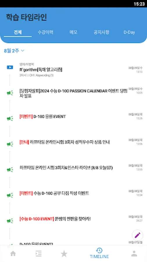 - Learning History: Manage your study plan carefully through course attendance records by date/time, real-time announcements from teachers of interest, and a simple memo function.