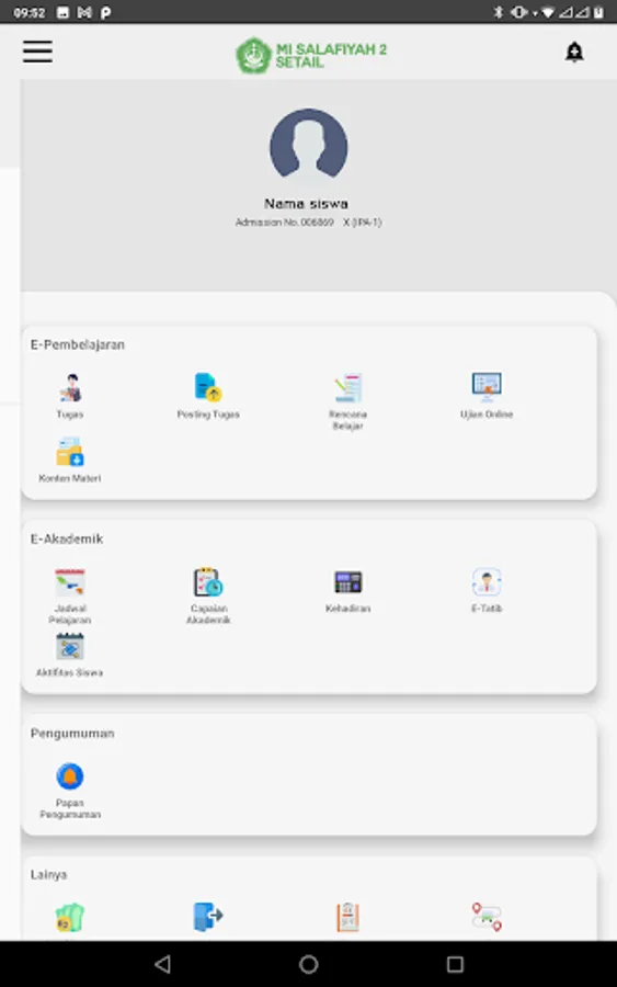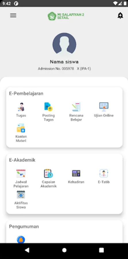 The Digital-School.ID MI SALAFIYAH 2 SETAIL application includes various features such as announcements, lesson scheduling, sending assignments, communication between teachers, students and parents, as well as accessing learning materials online