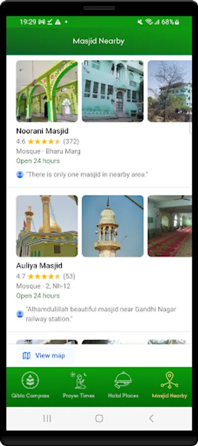 Finally, the app includes a Nearby halal place functionality, which helps users to find nearby restaurants and other establishments that serve halal food. This feature is particularly useful for those who follow a halal diet and are looking for suitable dining options in their area.