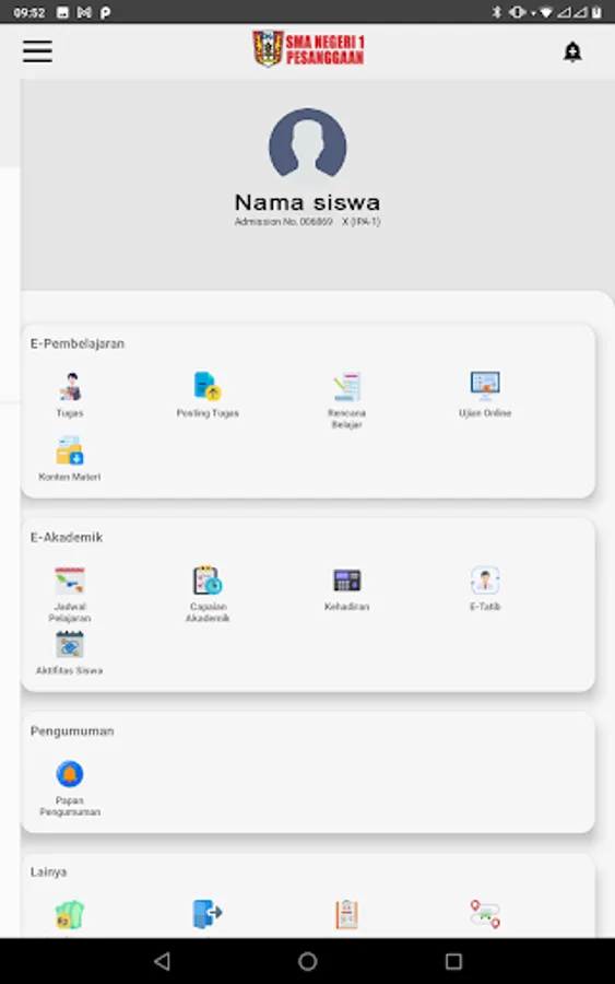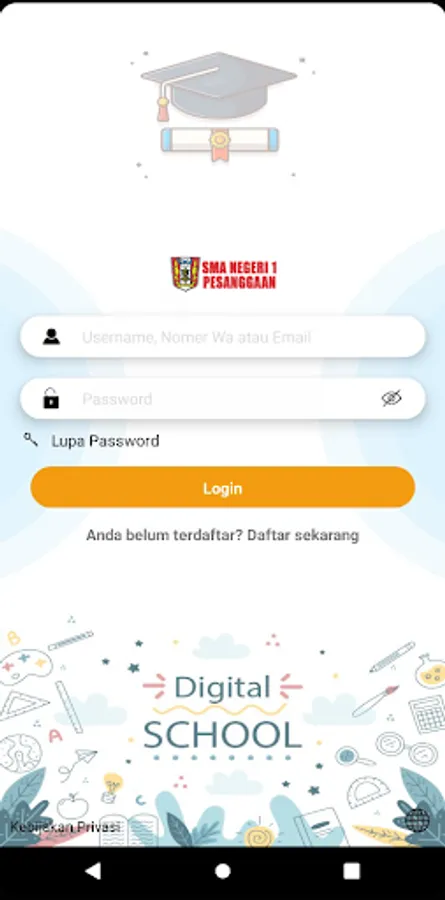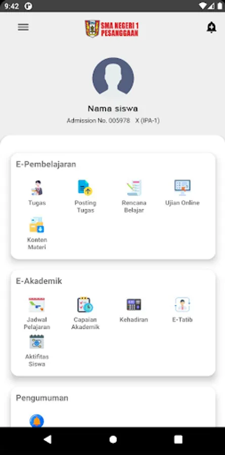 The digital school application for SMAN 1 PESGGARAN includes various features such as announcements, lesson scheduling, sending assignments, communication between teachers, students, and parents, as well as accessing learning materials online.