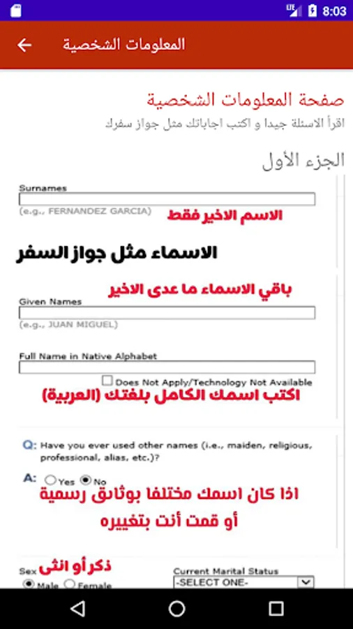 Now the first Arabic application specialized in this subject helps you in reading the form, and what should be written correctly