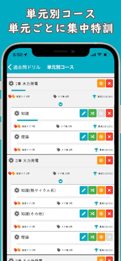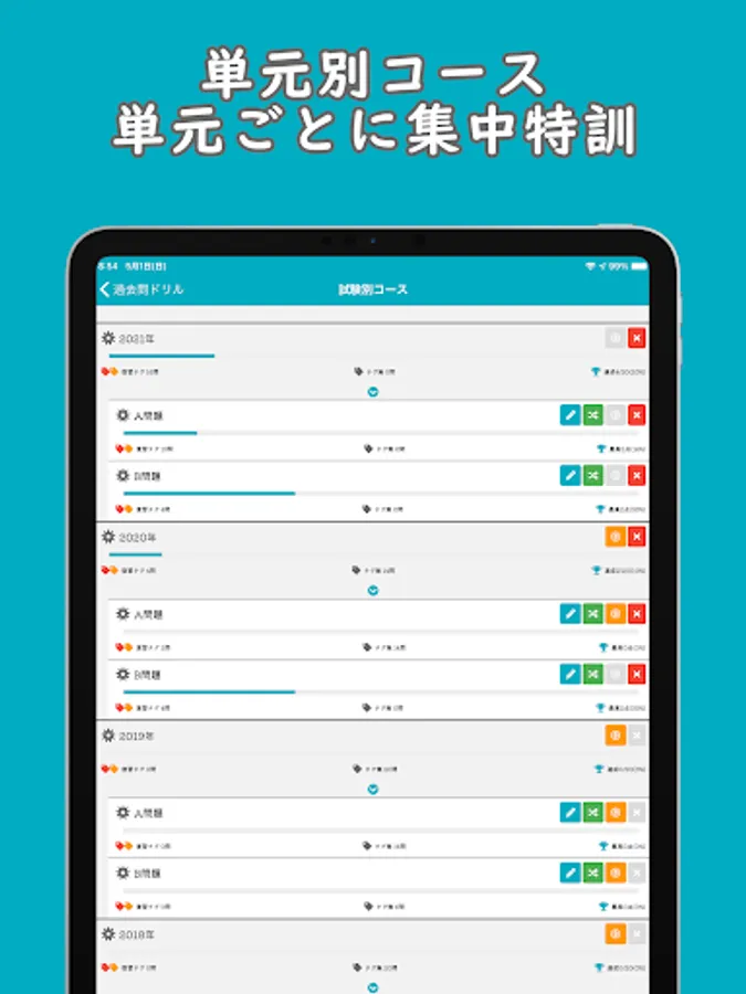 ・ "Unit-specific course" allows you to solve past problems by dividing them into units. You can definitely deepen your understanding by solving similar problems such as computational problems and legal problems.