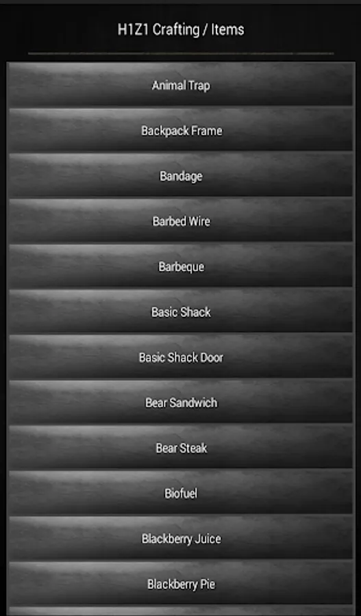 Fan made game guide for H1Z1. Look up crafting materials,weapons, and other info quickly