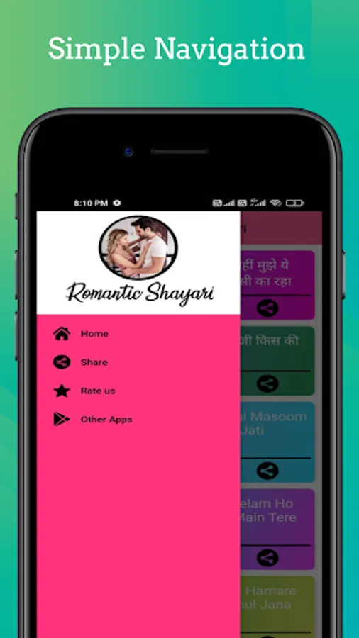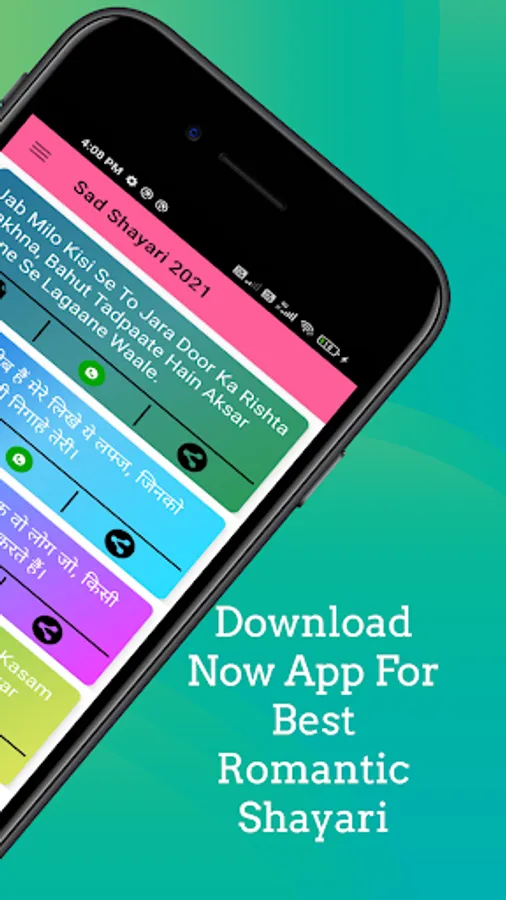 This app gives you the best Hindi Romantic Shayari 2021 with full collection of Love&Romantic Shayari show your love and care with these Love Shayari In Hindi.