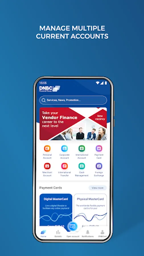 With DNBCnet mobile banking, you can transfer your funds internationally in seconds. DSBC Financial Europe provides the highest standard of payment solutions when it comes to wire transfer. You will experience the latest trend in App interfaces with customer-friendly features and fantastic light theme. Our remarkable design and one-touch feature encourages users to enjoy the digital environment on your phone and the convenience for making transactions on the go. We believe that money transfer is not just about performing a transaction, it is one of a kind experience. Download now and start experiencing!