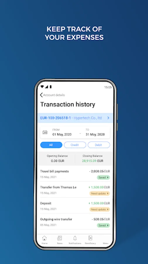 You can add a new payee or remove the old ones easily with the beneficiary list. No more wasting time when it comes to executing a payment, you only need to choose the beneficiary name and transfer information will be automatically filled in. It is as easy as keeping contact on your phone.