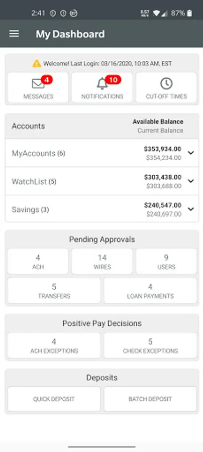 Dogwood State Bank’s Commercial Banking app allows you to stay connected and complete critical commercial banking tasks on the go. This intuitive app allows your business to securely access real-time account information, initiate payment transactions, decision exception items and generate reports in various file formats. Time sensitive transactions like internal transfers, ACH payments and wire transfers can all be approved within the Dogwood State Bank Commercial Banking app. Put the control and convenience of banking in your hands with our mobile commercial banking tool for business.