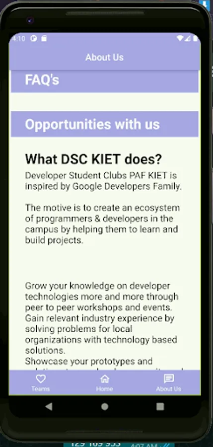 We try to engage student developers through our hack, events, codelabs, and meetups.where the main motive is to create an ecosystem of programmers and developers in around the campus, helping them to learn and build projects, and also helping students for bridge the gap between theory and practice.The technology awareness is main goal of our group.