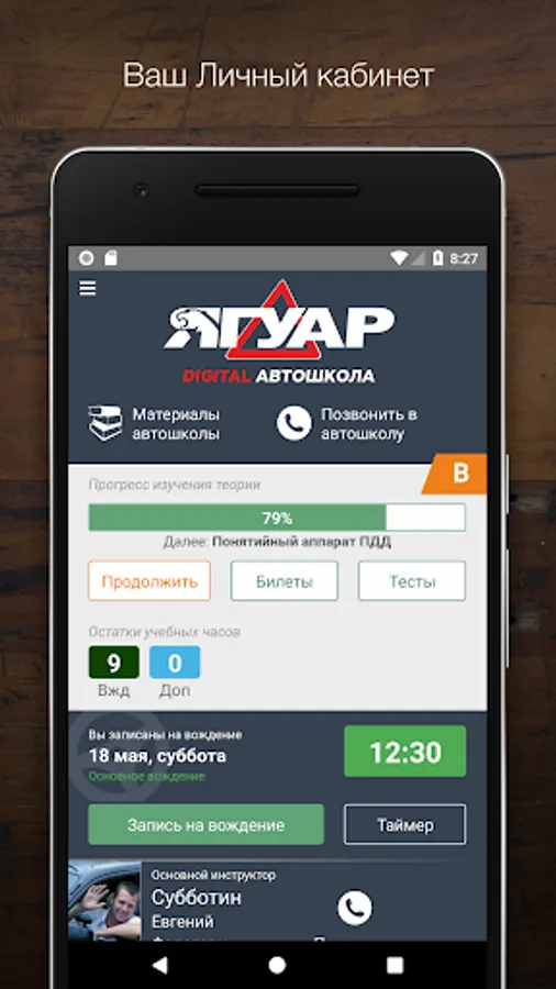 Application for cadets and employees of the network of driving schools "Jaguar"