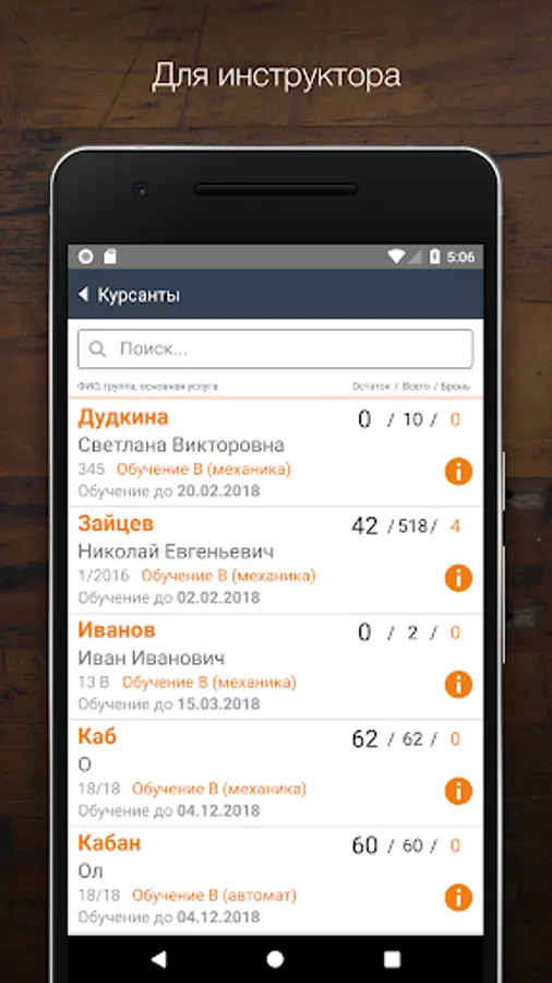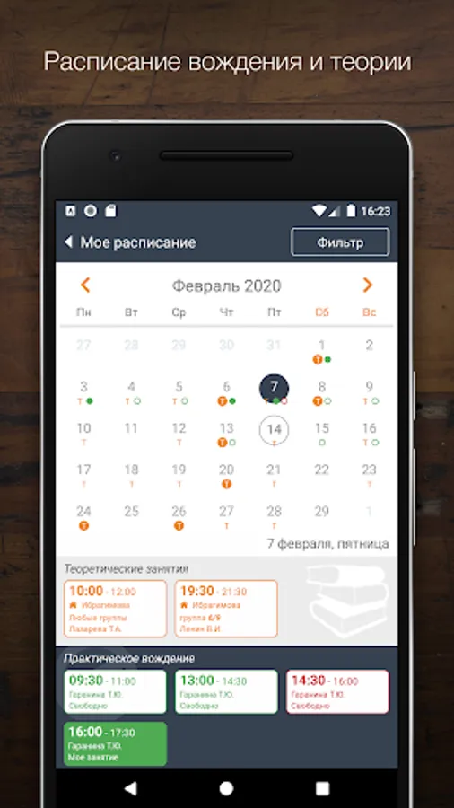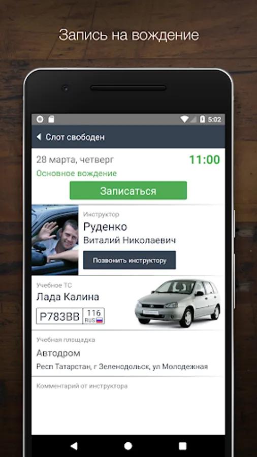 Opportunities for the instructor: drawing up a personal lesson schedule, each student’s card - all data, lesson routes, recording and canceling classes, receiving notifications.