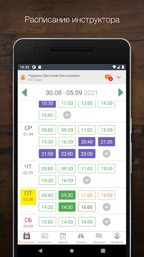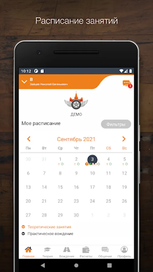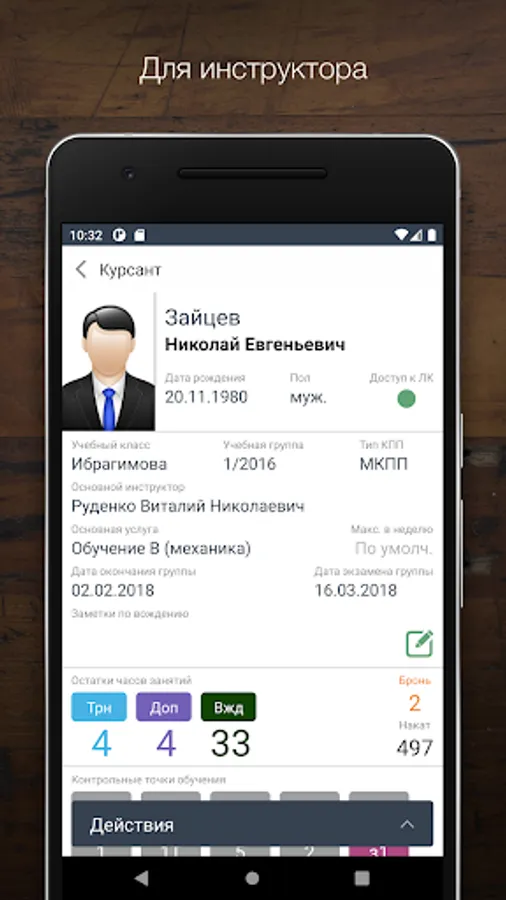 Opportunities for the instructor: drawing up a personal schedule of classes, a card for each cadet - all data, training routes, recording and canceling classes, receiving notifications, chats with colleagues and cadets, tickets and traffic rules.